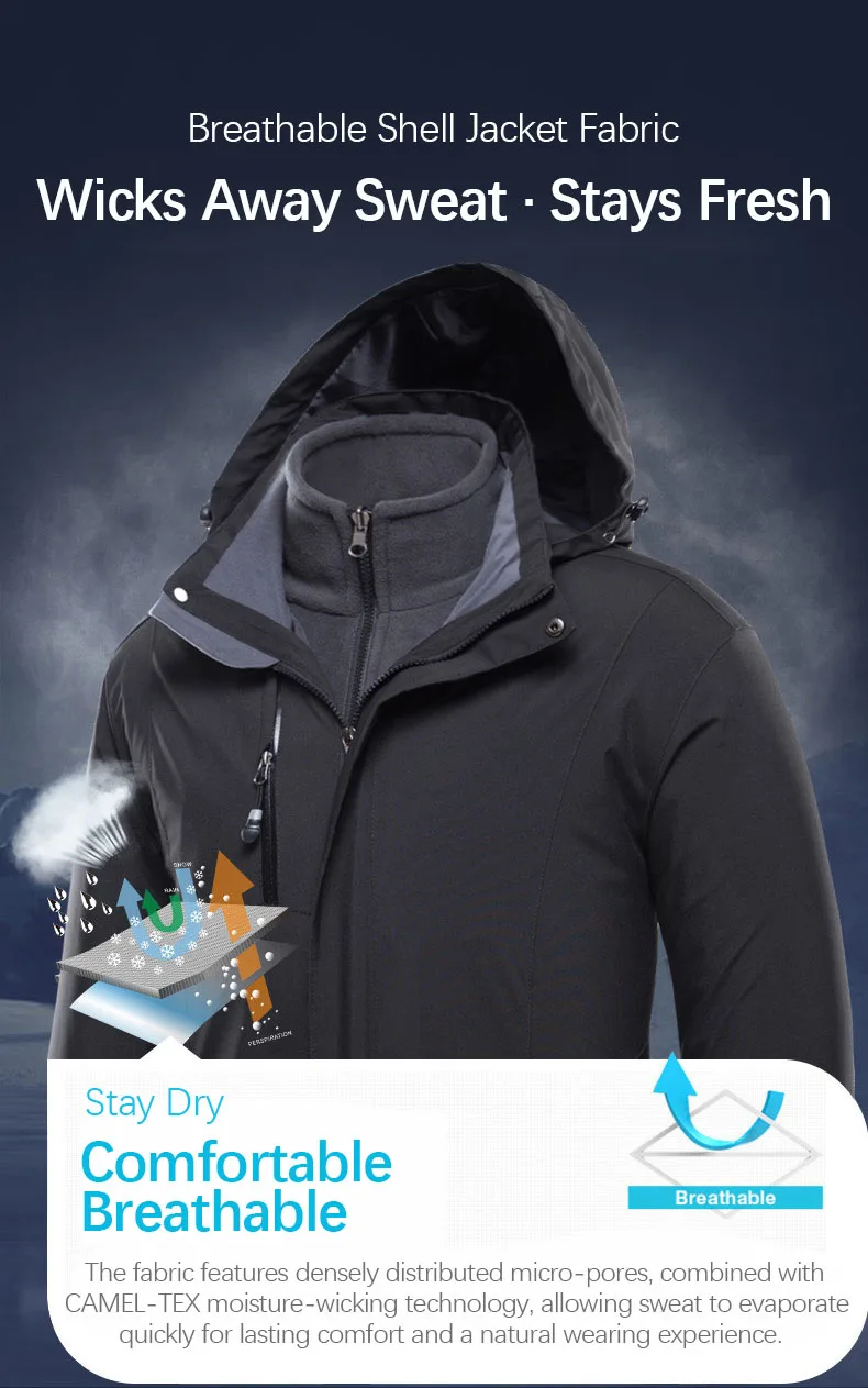 🧥 3-in-1 Design – Wear the outer shell, inner fleece, or both for full protection.