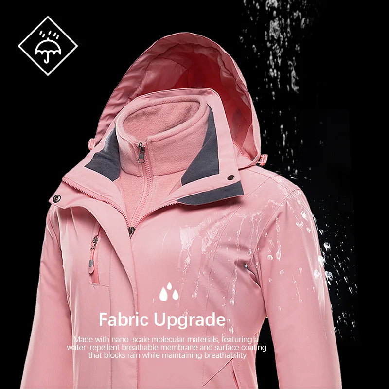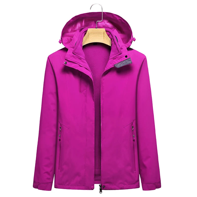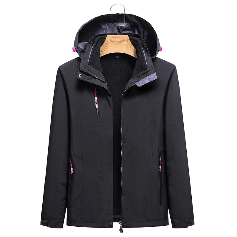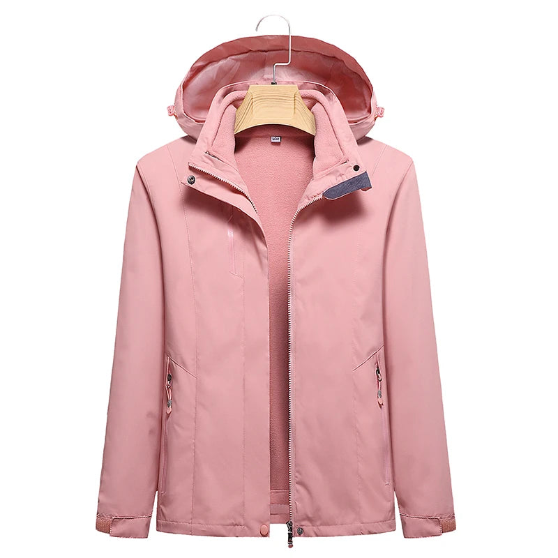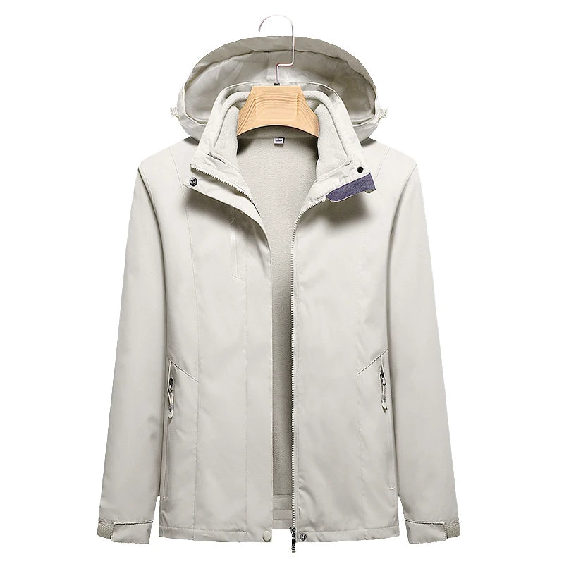 This women’s 3-in-1 outdoor jacket combines style, warmth, and versatility. With a detachable fleece inner layer and a removable hood, it adapts easily to cold, windy, or mild weather — perfect for hiking, camping, or everyday wear in autumn and winter.